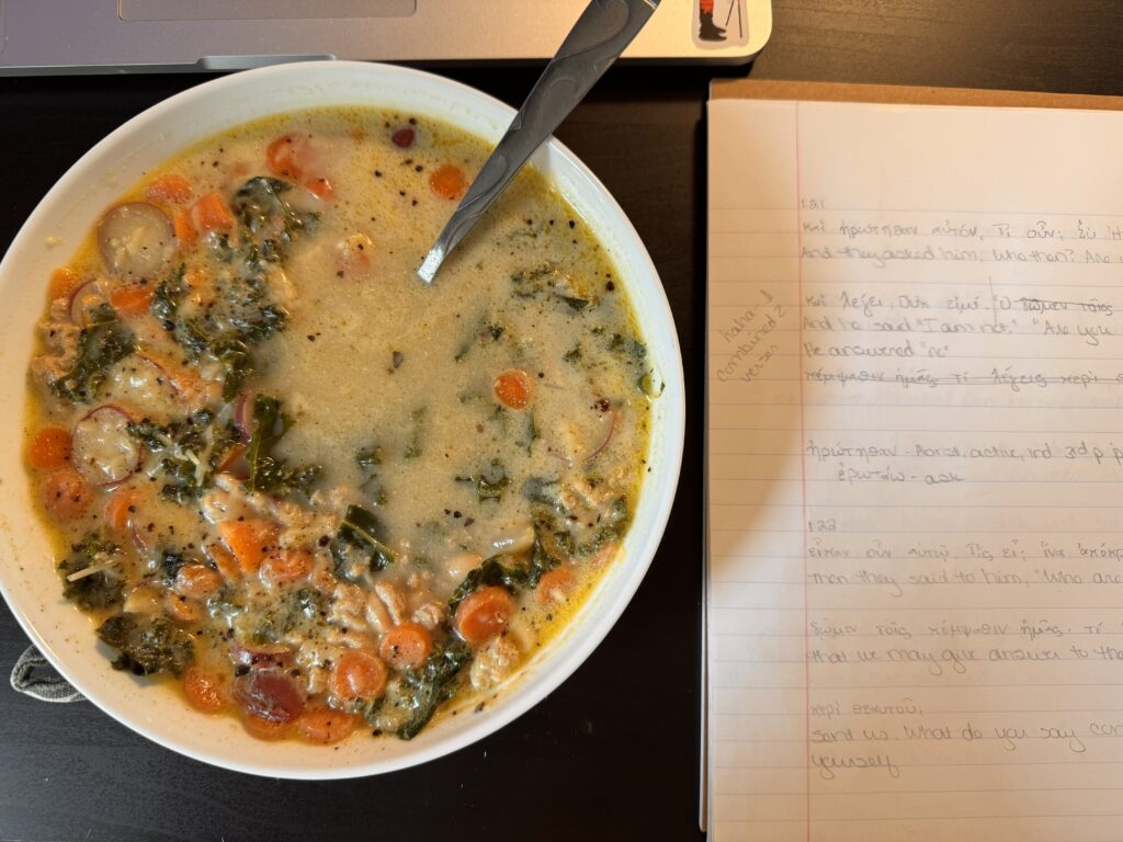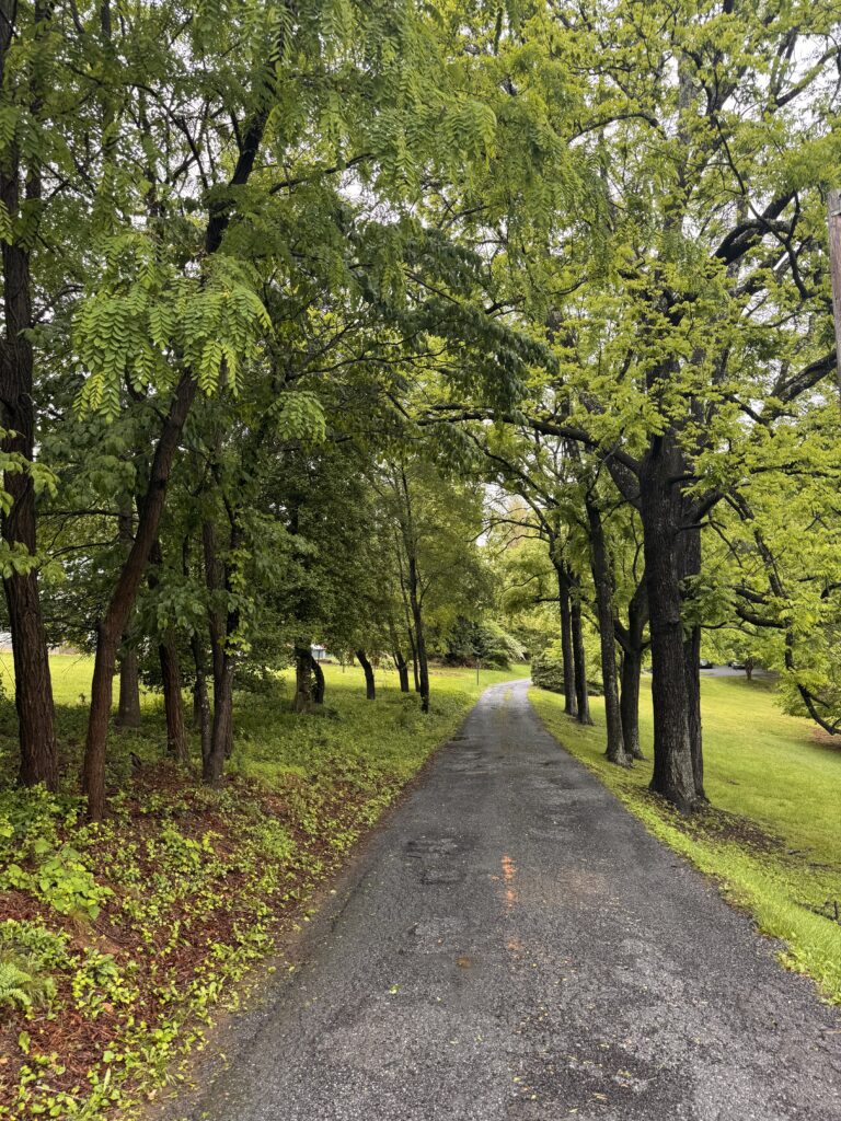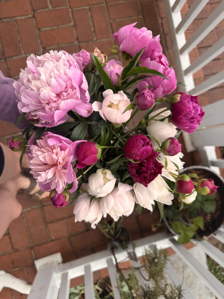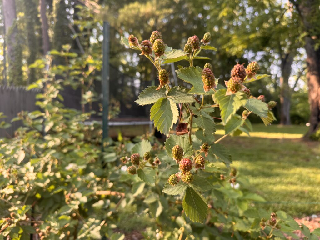 My assistant Albus is always looking for a place to nap.I cut the last of peonies before the days of rain last week. A quick Trader Joe’s run. I love a tree-lined road or driveway or river. Soup and Greek practiceThe blackberries are ripening! I’m finally painting the boys’ room!